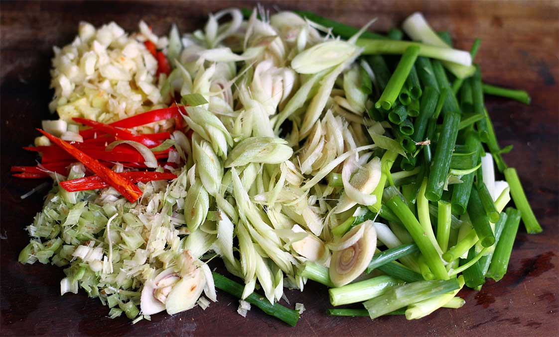 - 2–3 quả ớt sừng băm + 1–2 trái ớt chỉ thiên (tùy cay)